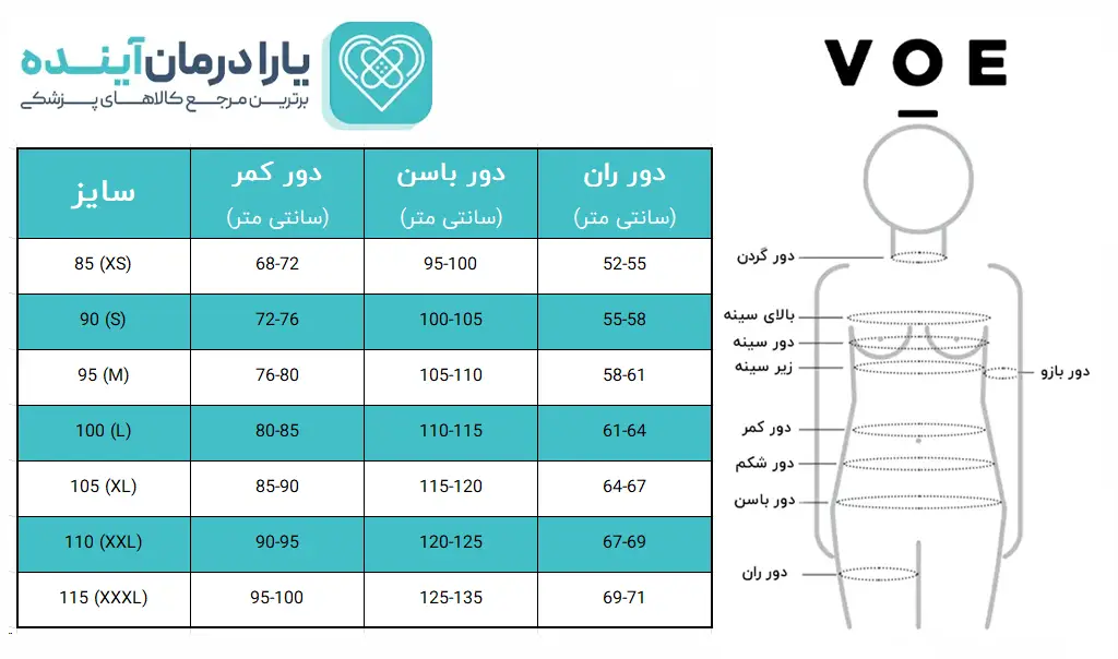 جدول راهنمای سایز گن های بعد از جراحی ووئه VOE